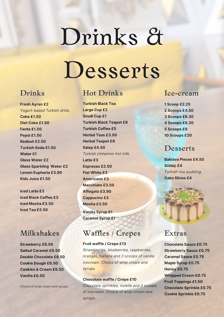 - Delicious Desserts: Satisfy your sweet tooth with Baklava, Sütlaç (rice pudding), and assorted cake slices, all at incredibly affordable prices.